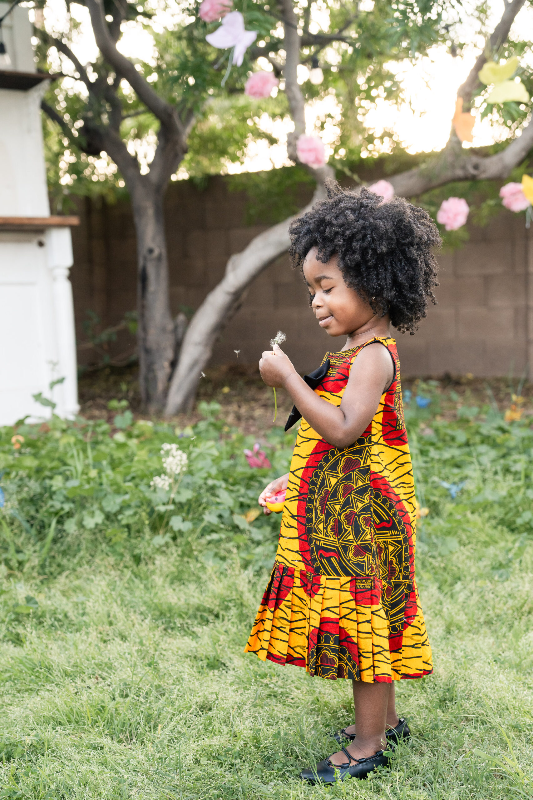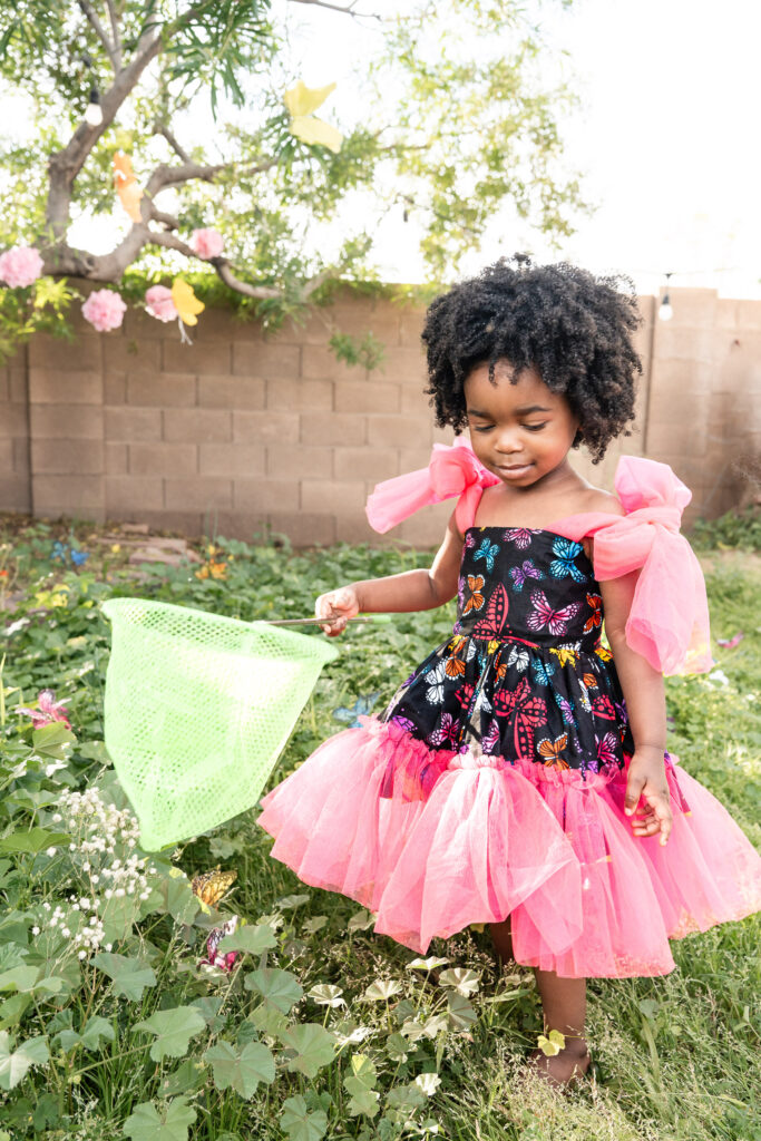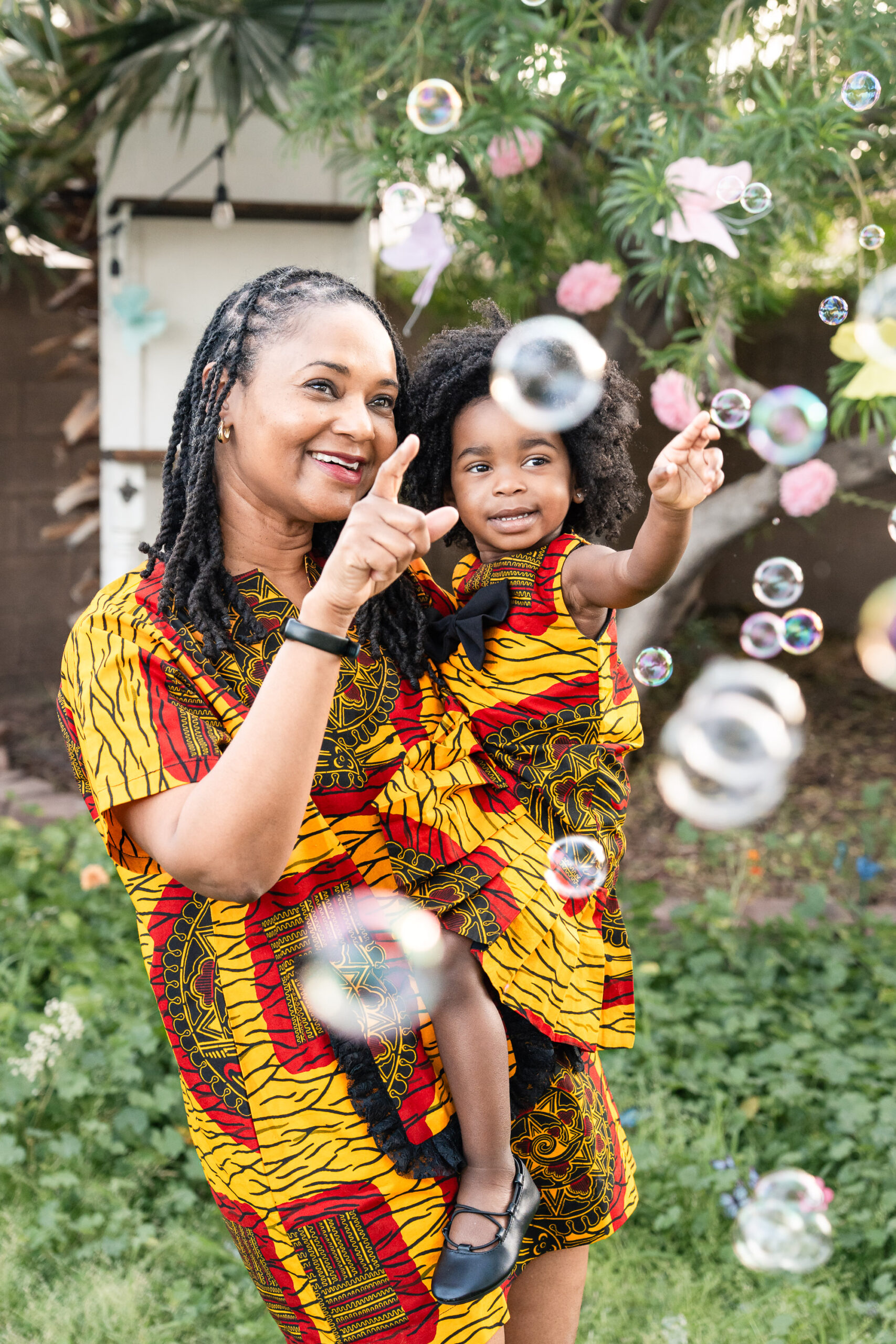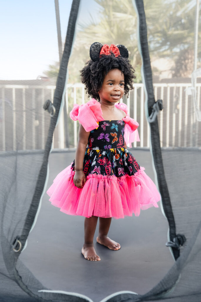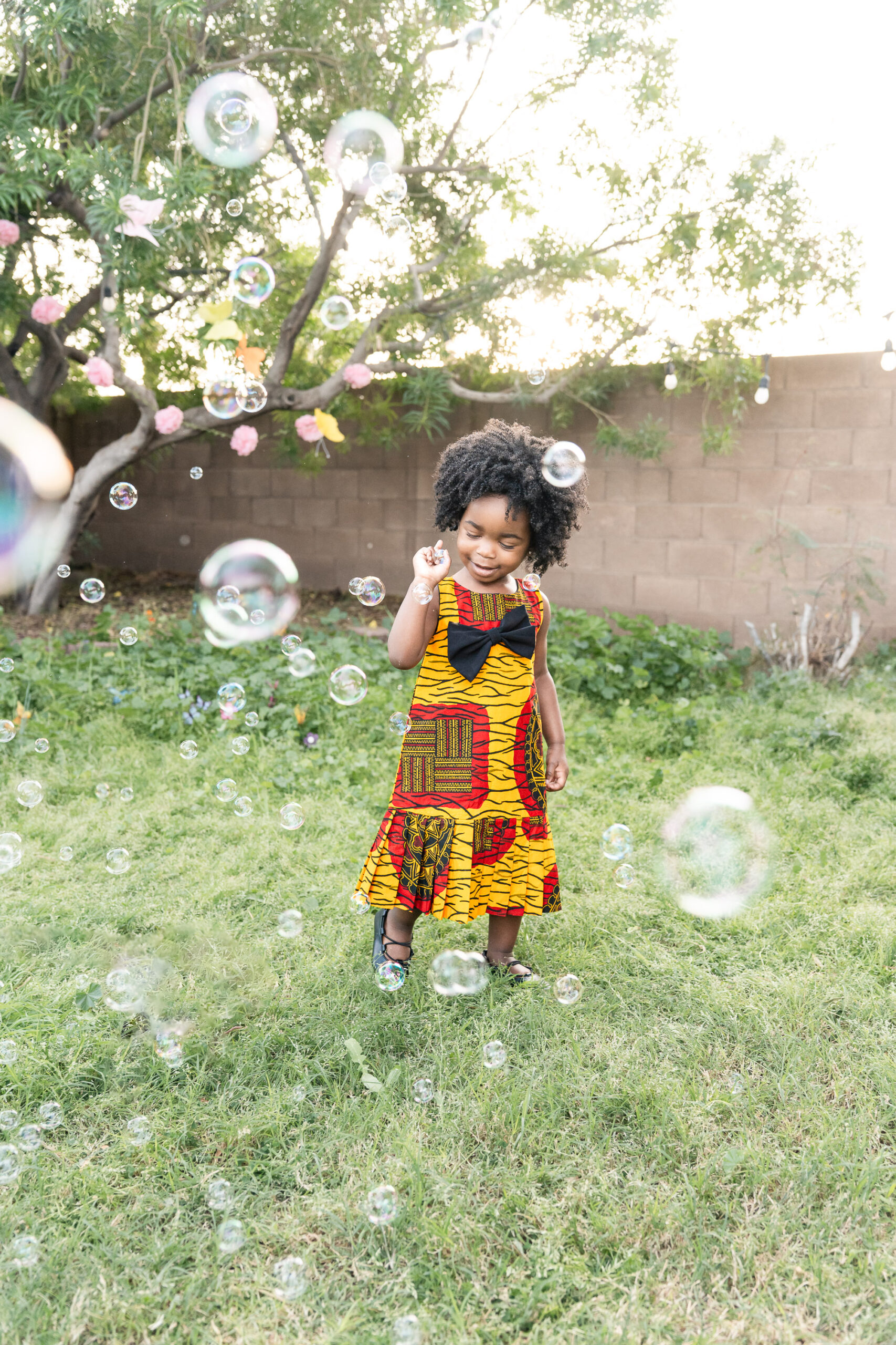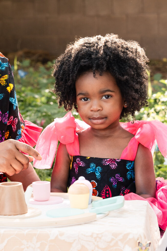 For the final look, we focused on heritage. Her bold African print dress, matching her mom’s, represented her family’s tribe. We kept this part of the session simple and full of movement—bubbles floating through the air, laughter, and space for Nile to just be two. It was playful, meaningful, and completely her.