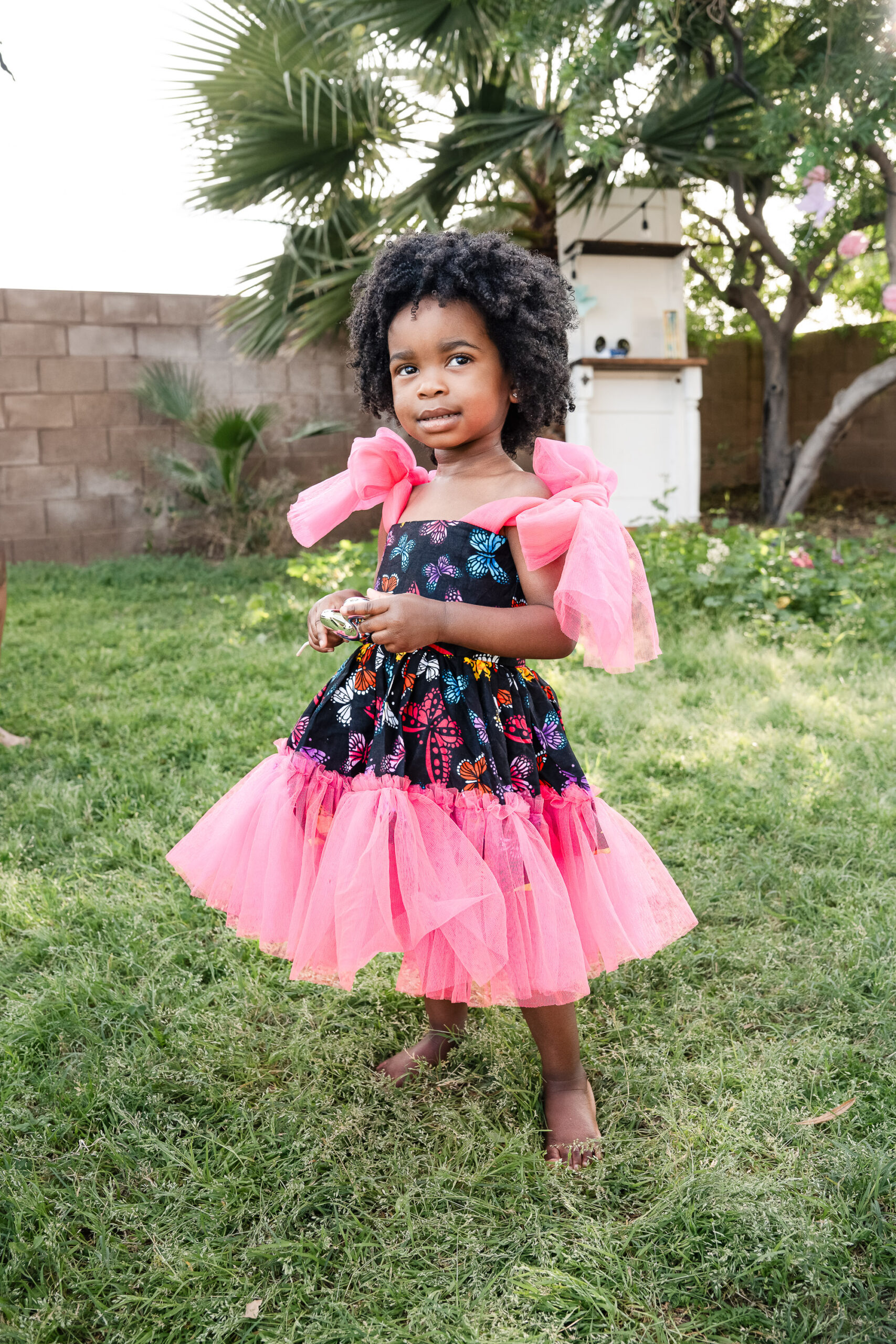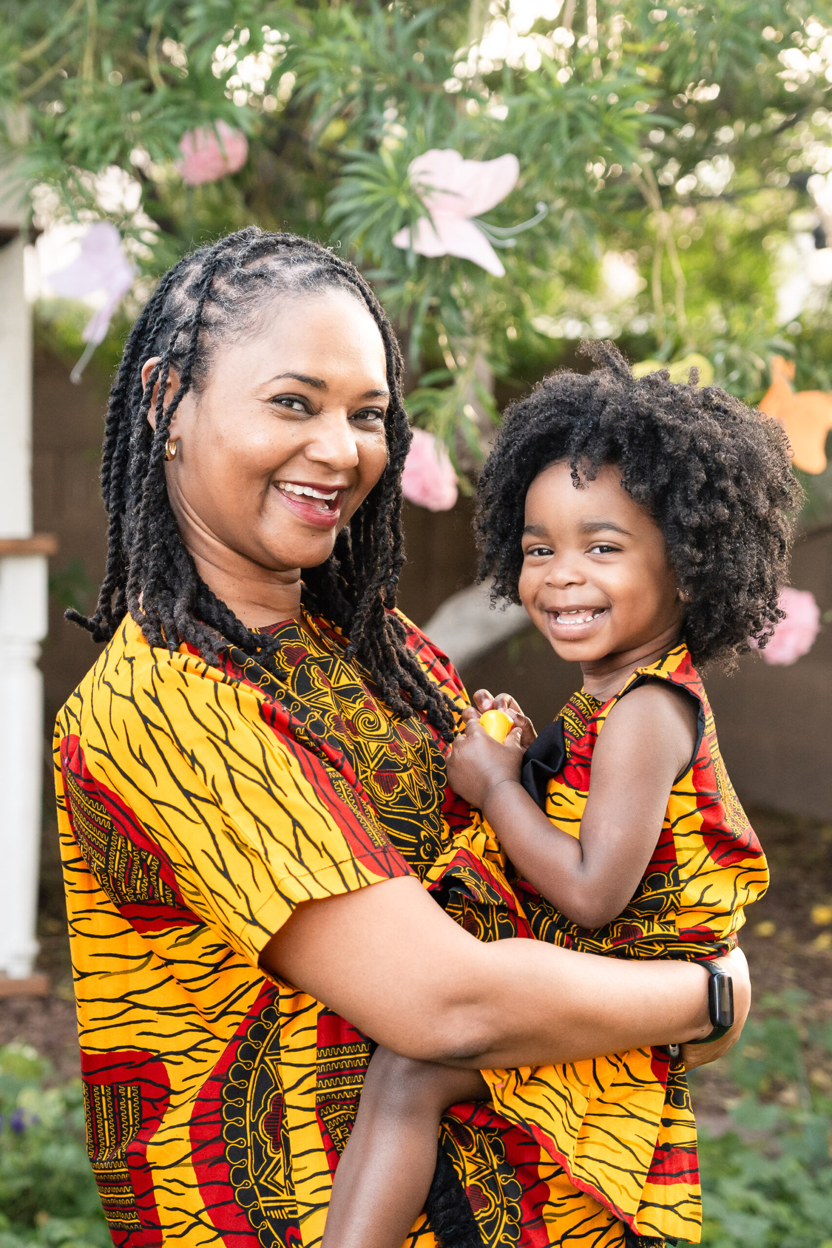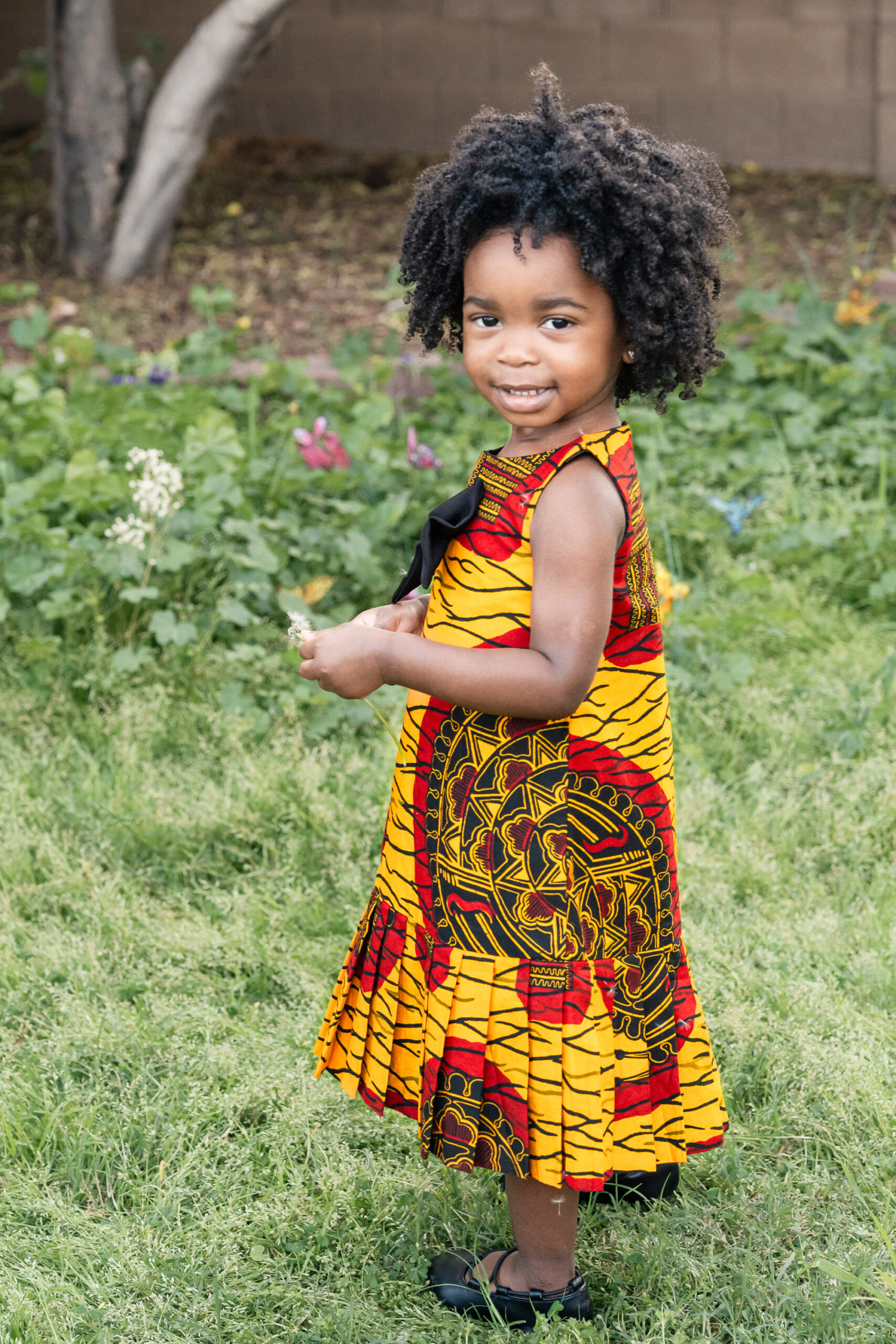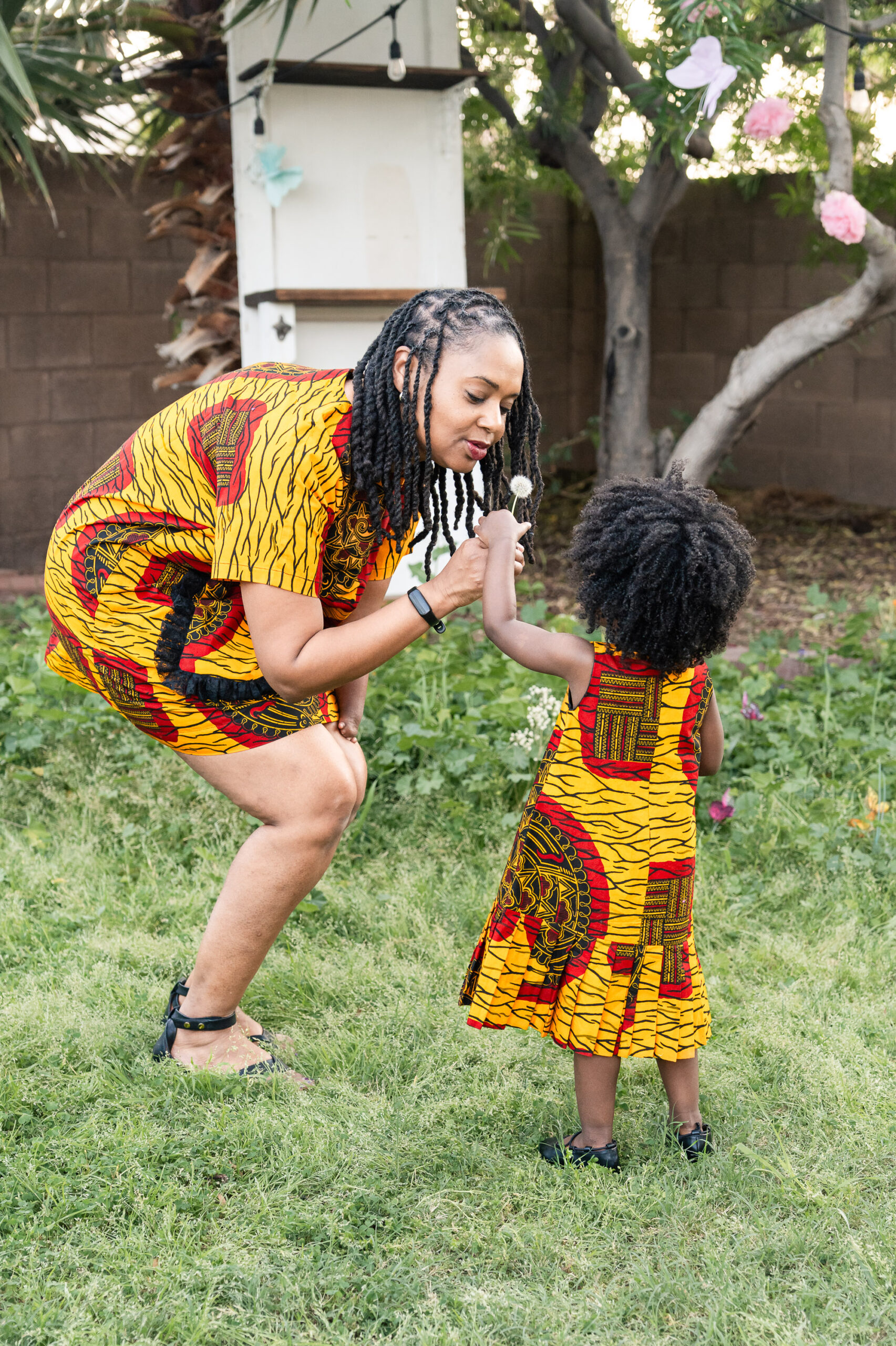 For the final look, we focused on heritage. Her bold African print dress, matching her mom’s, represented her family’s tribe. We kept this part of the session simple and full of movement—bubbles floating through the air, laughter, and space for Nile to just be two. It was playful, meaningful, and completely her.